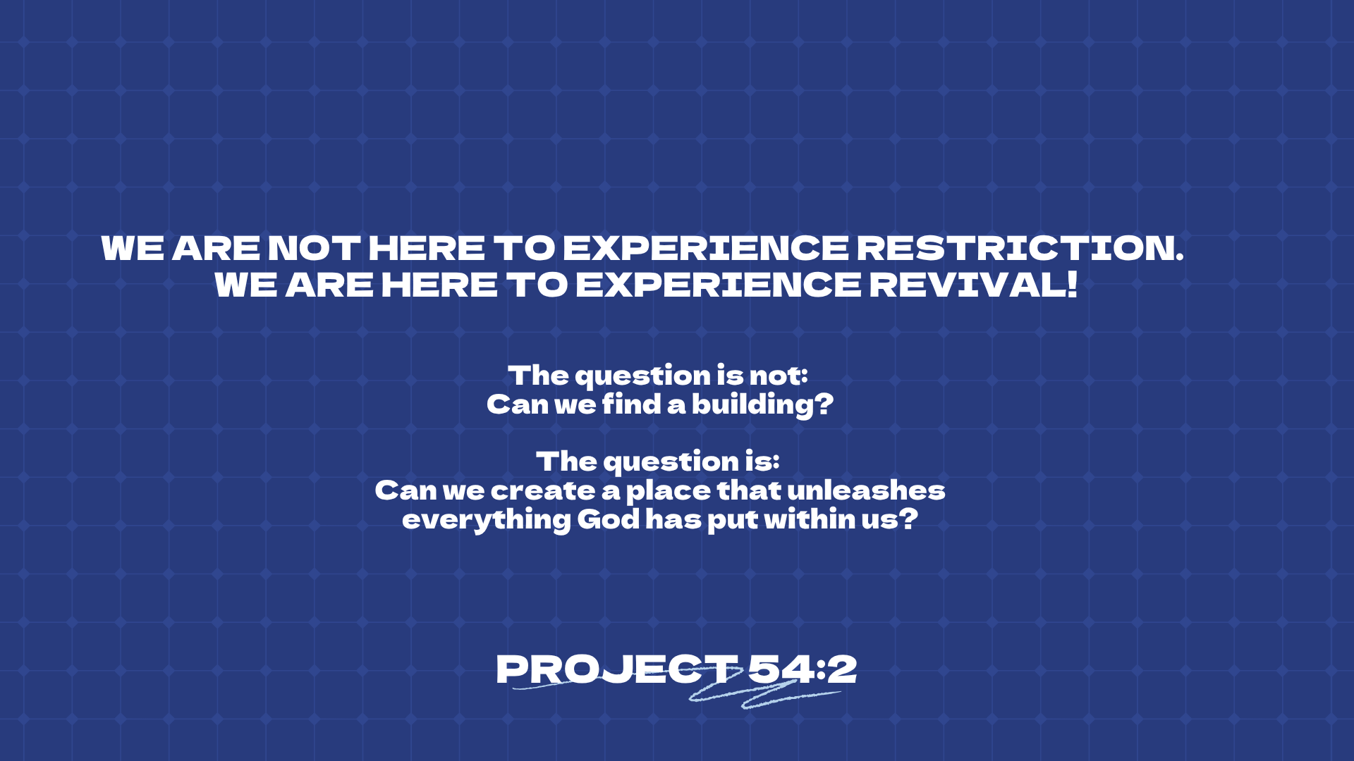 To create a lasting legacy for the next generation by finding a larger building for our church community to move into.